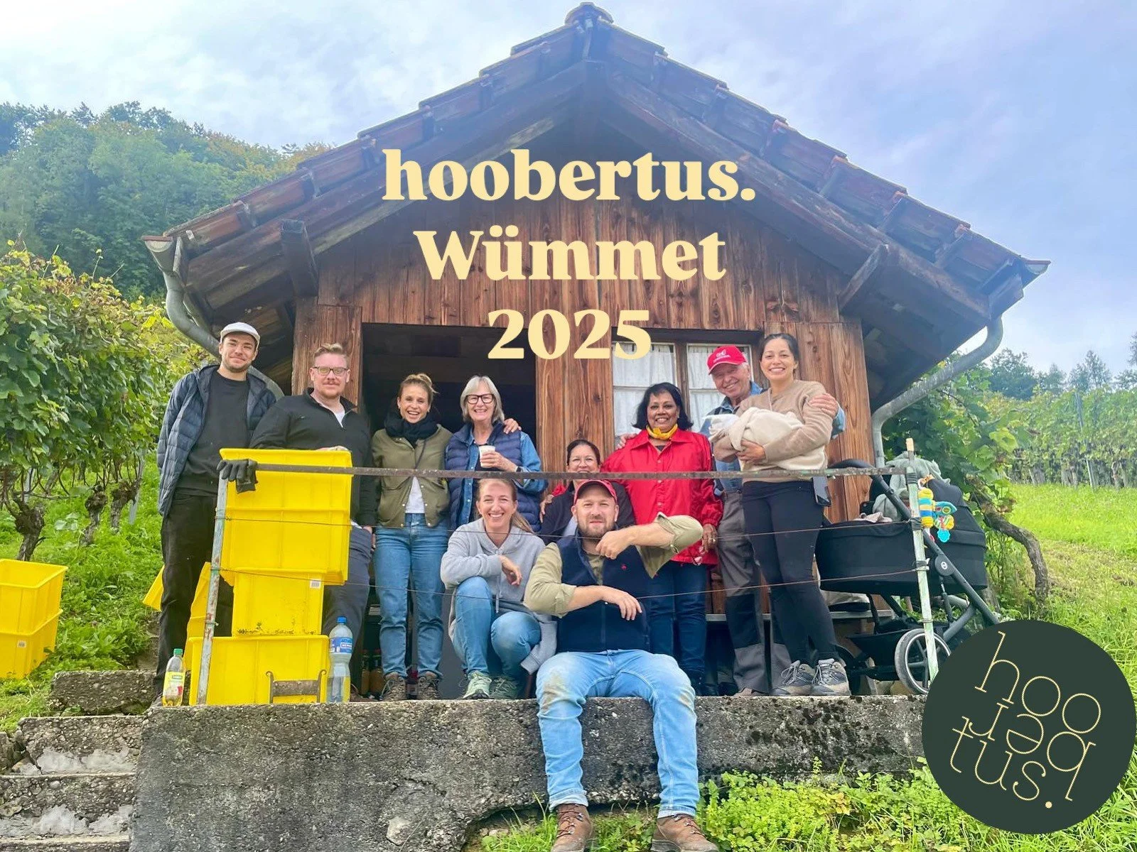 Am Tag der Wümmet selbst durften wir auf die Unterstützung von elf genialen Helfern zählen – Freunde und Familie, die mit vollem Einsatz und guter Laune an unserer Seite standen. Zwischen Reben, Kisten und durchzogenem Wetter wurde gelacht, gearbeitet und gemeinsam ein Stück Hoobertus-Geschichte geschrieben.